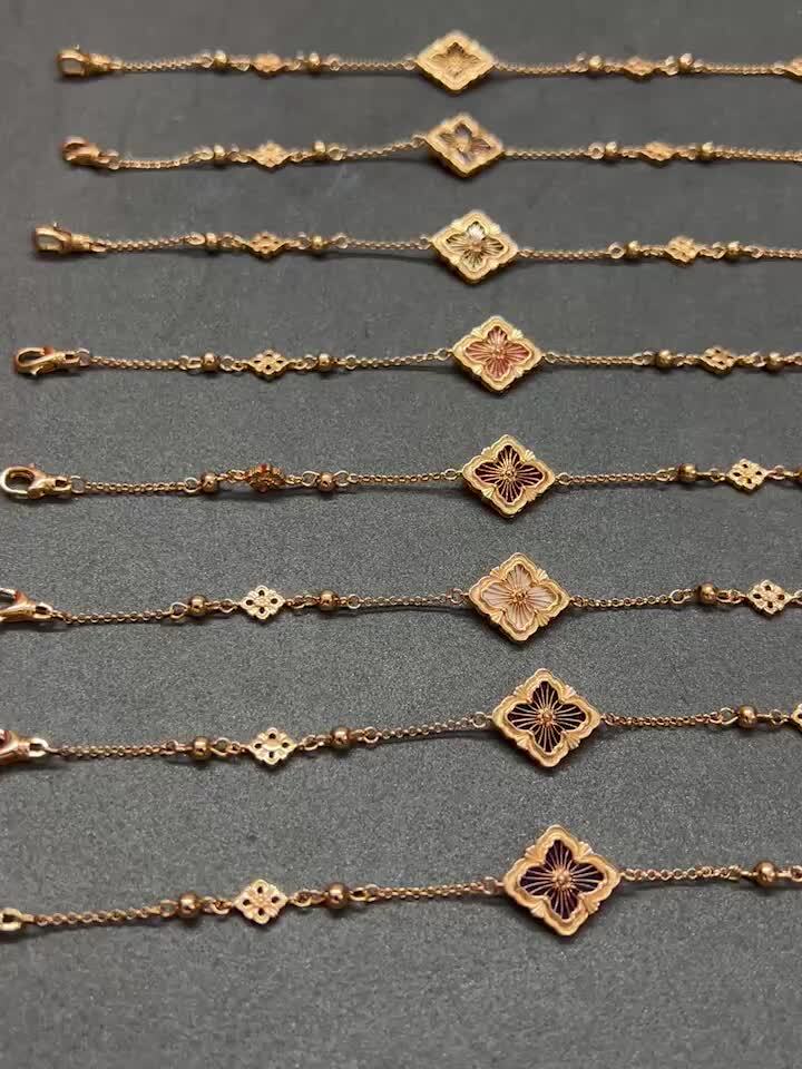 Hl77A20布契拉提 Buccellati 三花手链 背面带钻款 光面可戴 玫瑰金 黄金色