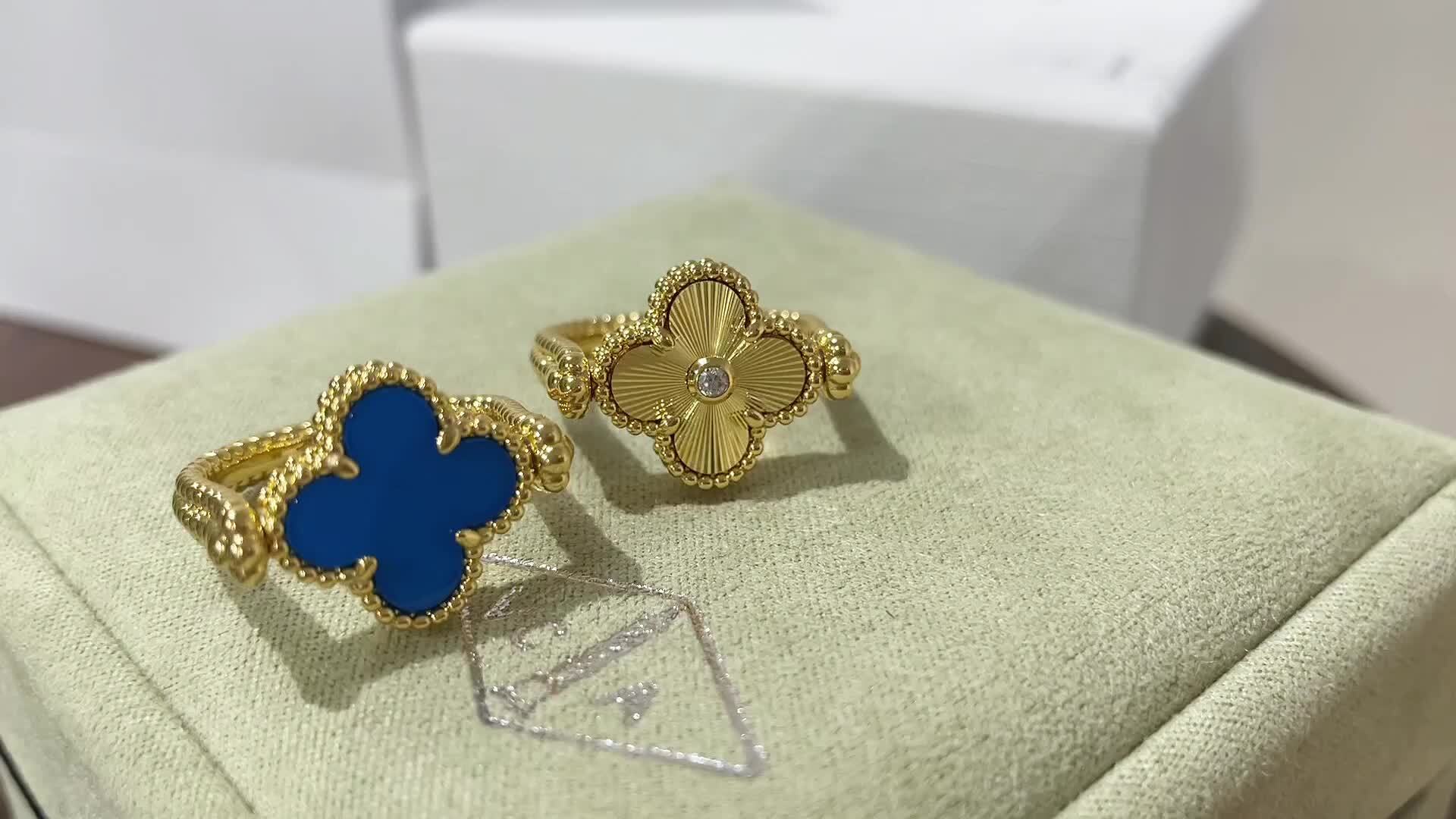 梵克雅宝 一面为蓝玛瑙一面为车花~ 两戴款戒指💕