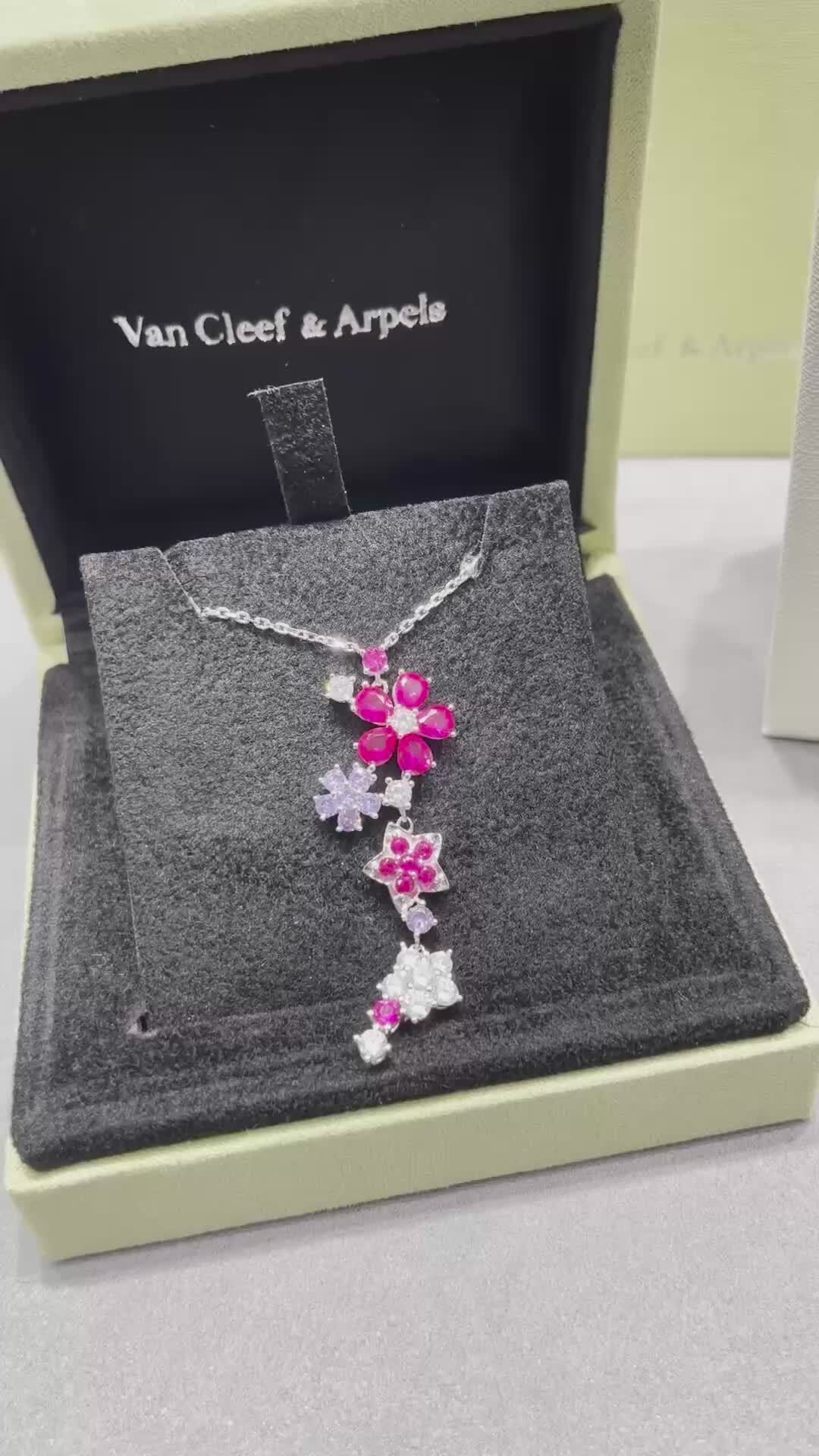 V金材质 5140B80 VCA彩色花卉项链,打破四叶草的经典🍀特别惹人爱,衬肤色白嫩,特别百搭,适合任何场合,姐妹聚会,倍有面子。
