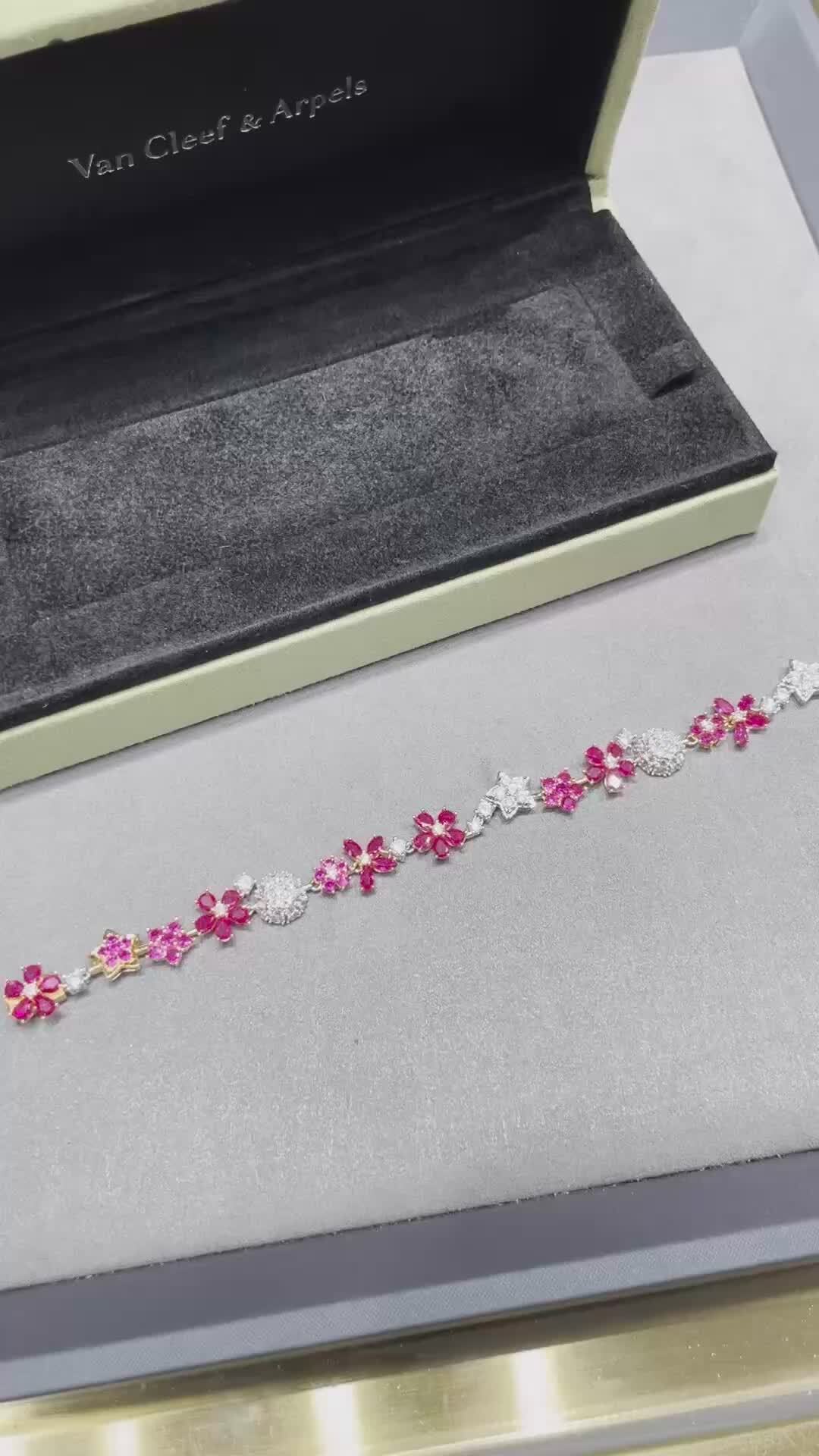 Hl76A10梵克雅宝手链 新品钻间玫红玫红石五花手链
